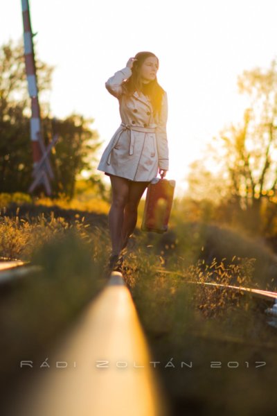 Elég sok helyen megfordulok városszerte akár egy nap leforgása alatt is. Sokszor megesik, hogy találok új útvonalakat, eldugott utcákat, rövidítéseket amik felketik érdeklődésem. Igyekszem elraktározni az agyamban, vagy inkább felírom papírra amit elhagyok, majd újra felírom , csak már telefonba egy jegyzetbe amit lehet nem nézek meg fél évig. Most viszont túl nagy volt az inger és minden összeállt. Pont időben jártam arra és láthattam a naplementét a sínekkel. A fejemben össze is állt a kép és nem volt más dolgom mint időpontot egyezetetni egy vállalkozó szellemmel. A csavar számomra ott kezdődik hogy egy másik fotózásra indultam amikor megcsörrent a telefon. A modell hívott akivel a sínes bőrönös fotózást egyeztettem 1 héttel későbbre. Megkérdezte lehetne e szó arról, hogy a mai napon fotózzunk mert ma van szép tiszta az idő és jövő hétre esőt jósolnak. A szavam is elállt mert nem tudtam hogyan oldjam meg. Szemben állok a mai modellel , le vagyok fagyva. Meg akarom oldani ezt , muszály! Nem voltak nálam azok az eszközök(állvány, stripbox, asszistensXD) amiket a síneshez terveztem. Be van zárva a stúdióba a város másik felén és nincs nálam kulcs. Mit fog szólni a mai modell, hogy mást is előtérbe helyezek? Kértem egy kis türelmet és őrült telefonálásba kezdtem. A munkatársam akinek volt kulcsa,pont ráért, érdekelte a problémám és még segíteni is volt hajlandó……… megmentette a napom :). Természetesen nincs vége a napnak. Kicsit felborult a terv mert a városi közlekedés miatt lecsúszott a modell a naplemetéről, ezért megcseréltem a programot és a következő modellel egy teljesen más hangulatú fotózás kerekedett ki. Ahogy sötétedett előkerültek a gyanús alakok, akik túl közel kerültek mind hozzánk mind a cuccunkhoz.