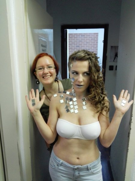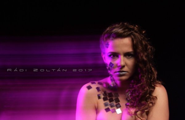 Több fényvisszaverő felületre volt szükségem mint az előző kudarc alkalmával. Használtunk kis tükörmozaikokat, ezüstös sminket és persze egy jó modellt:D . Gabival sokat dolgozunk együtt. Ő egy olyan ember aki miközben modellt áll , ötletel is.