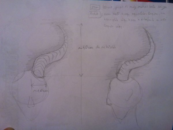 A pánt rögzítését Ivett oldotta meg. A szarvak súlya miatt egy damillal még össze van kötve a két csúcsa, így nem dőlnek annyira ki.