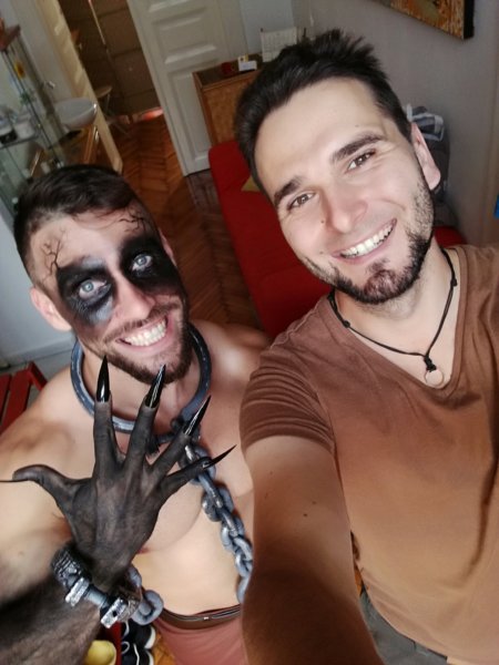 Közösen kitaláltuk , hogyan lehetne rögzíteni a szarvat, kifesteni Attilát, és mit lehetne még hozzátenni, hogy ne legyen túl sok de mutasson is. Attilával arról beszéltünk mennyire és mikorra lehetne leszálkásítania magát.